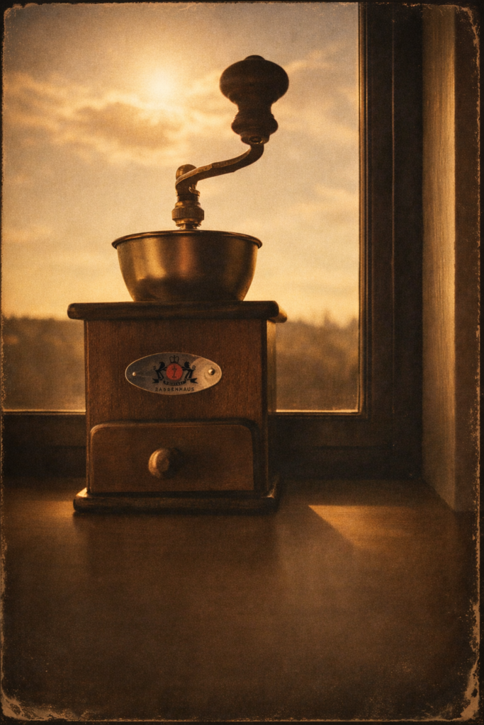 コーヒーミルでカリカリと挽く音も、ゆったりと流れる大切な余韻です。
